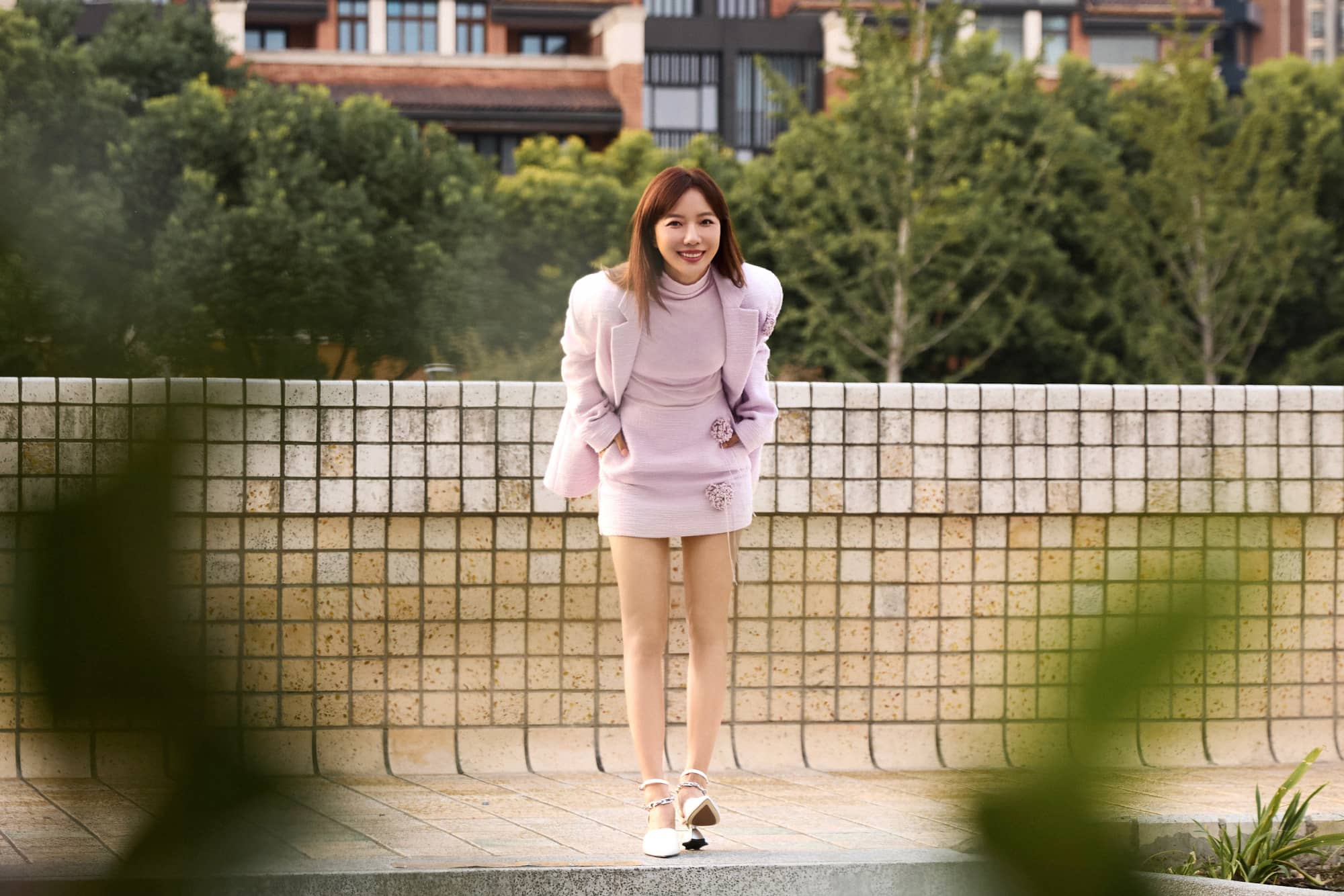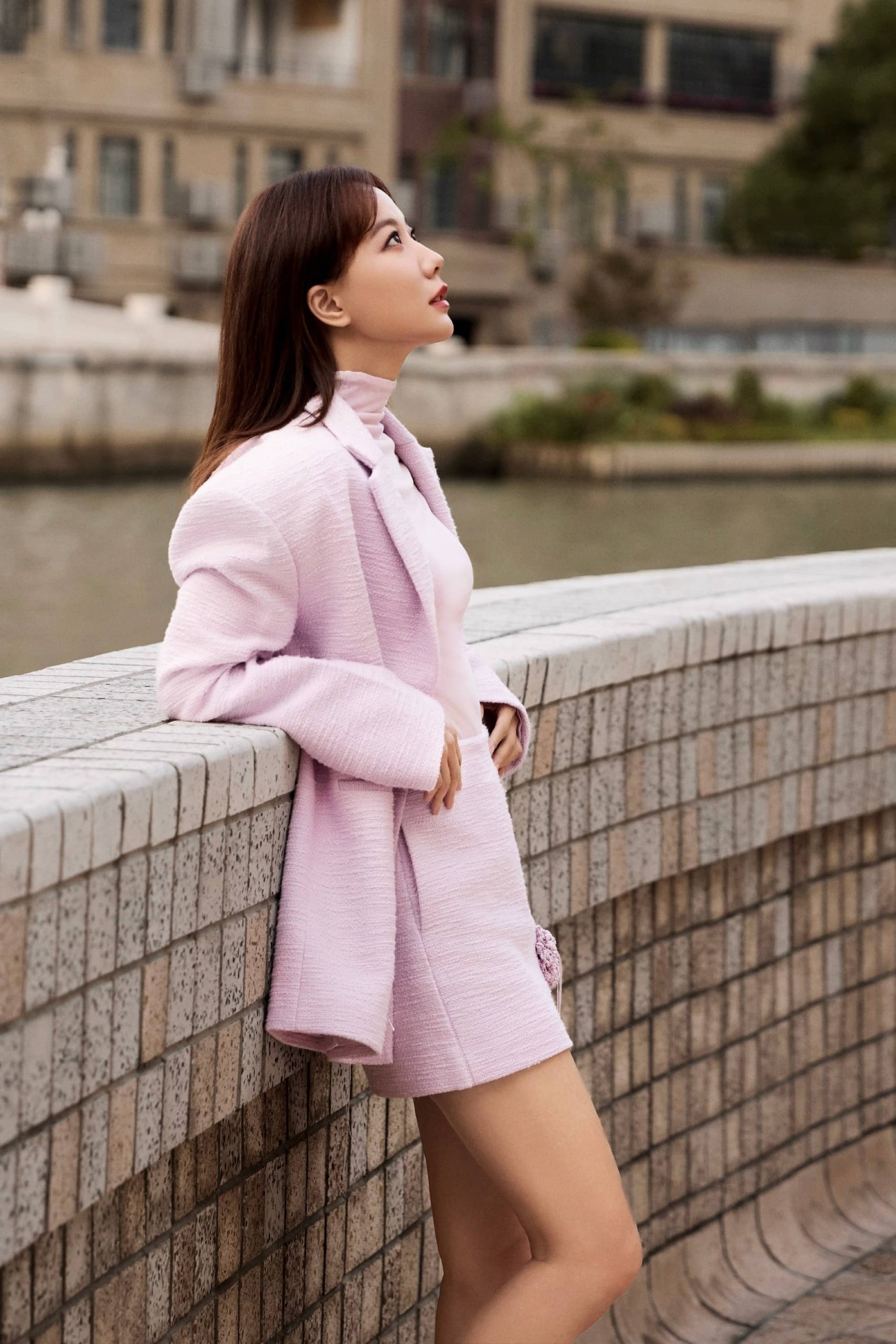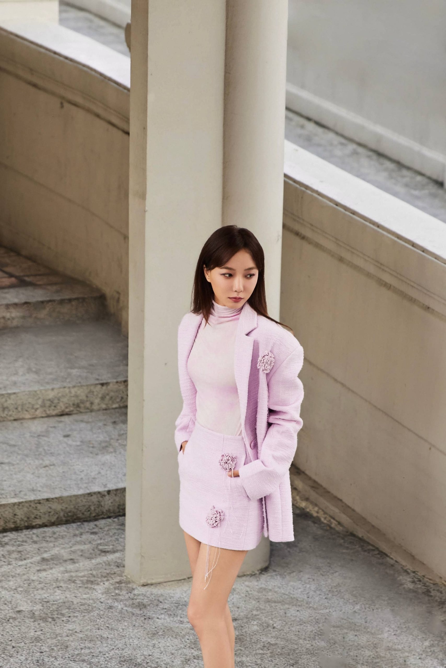 王珞丹,一身粉色套装,格外精致优雅