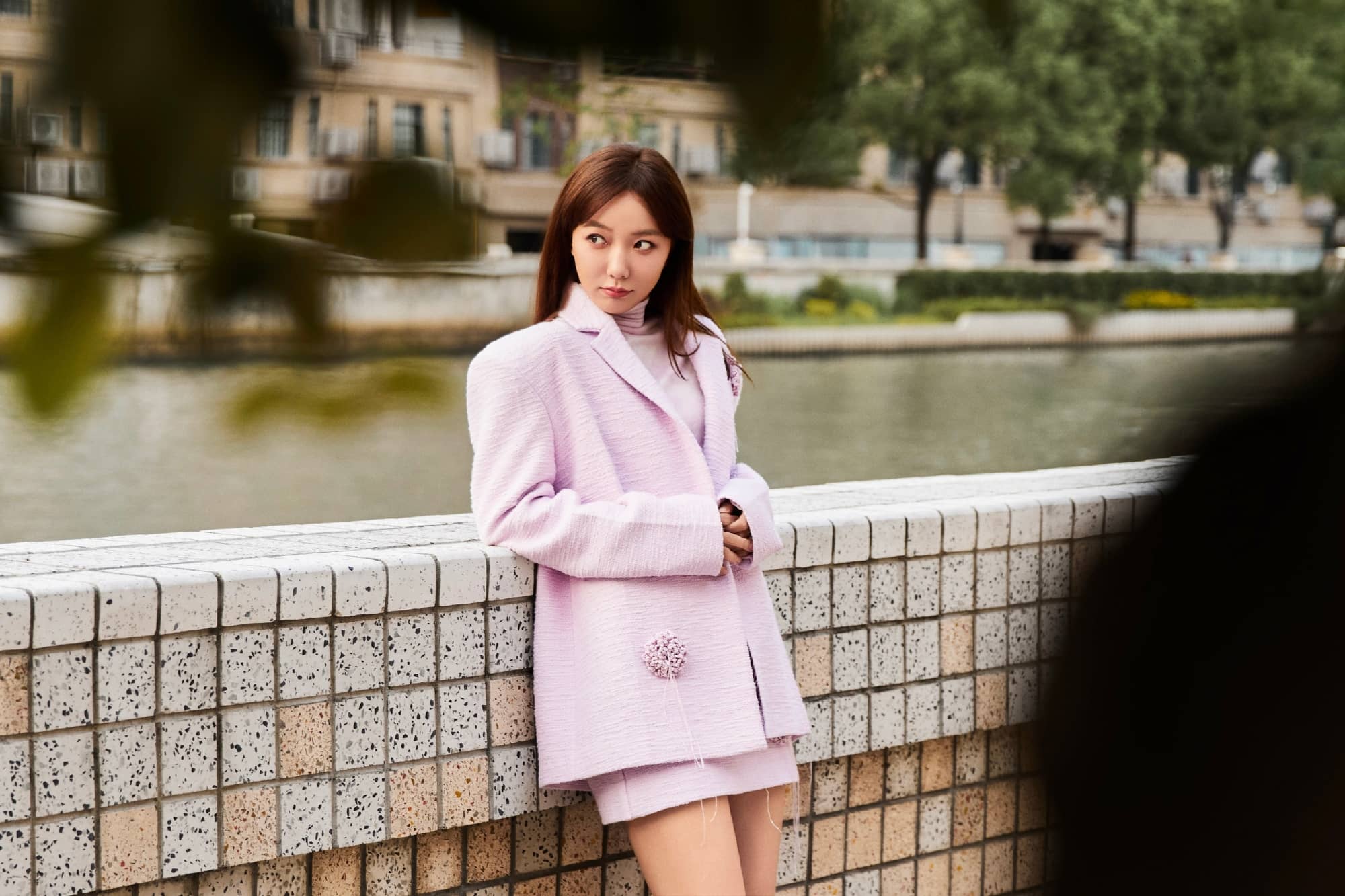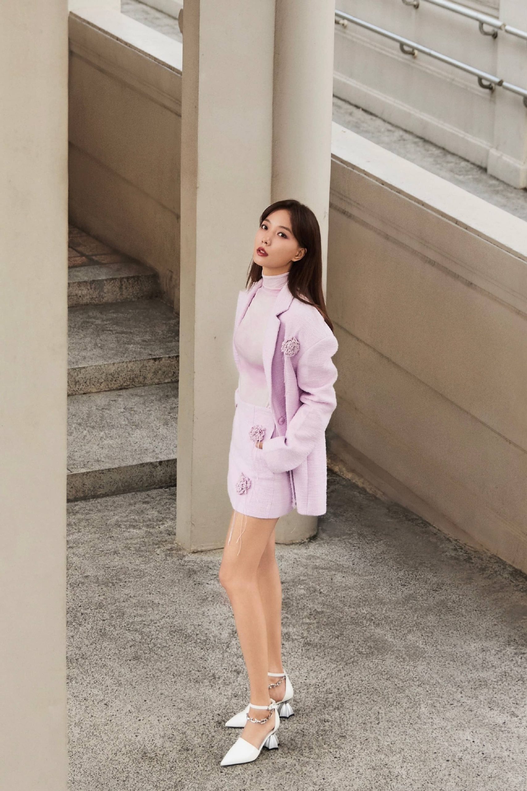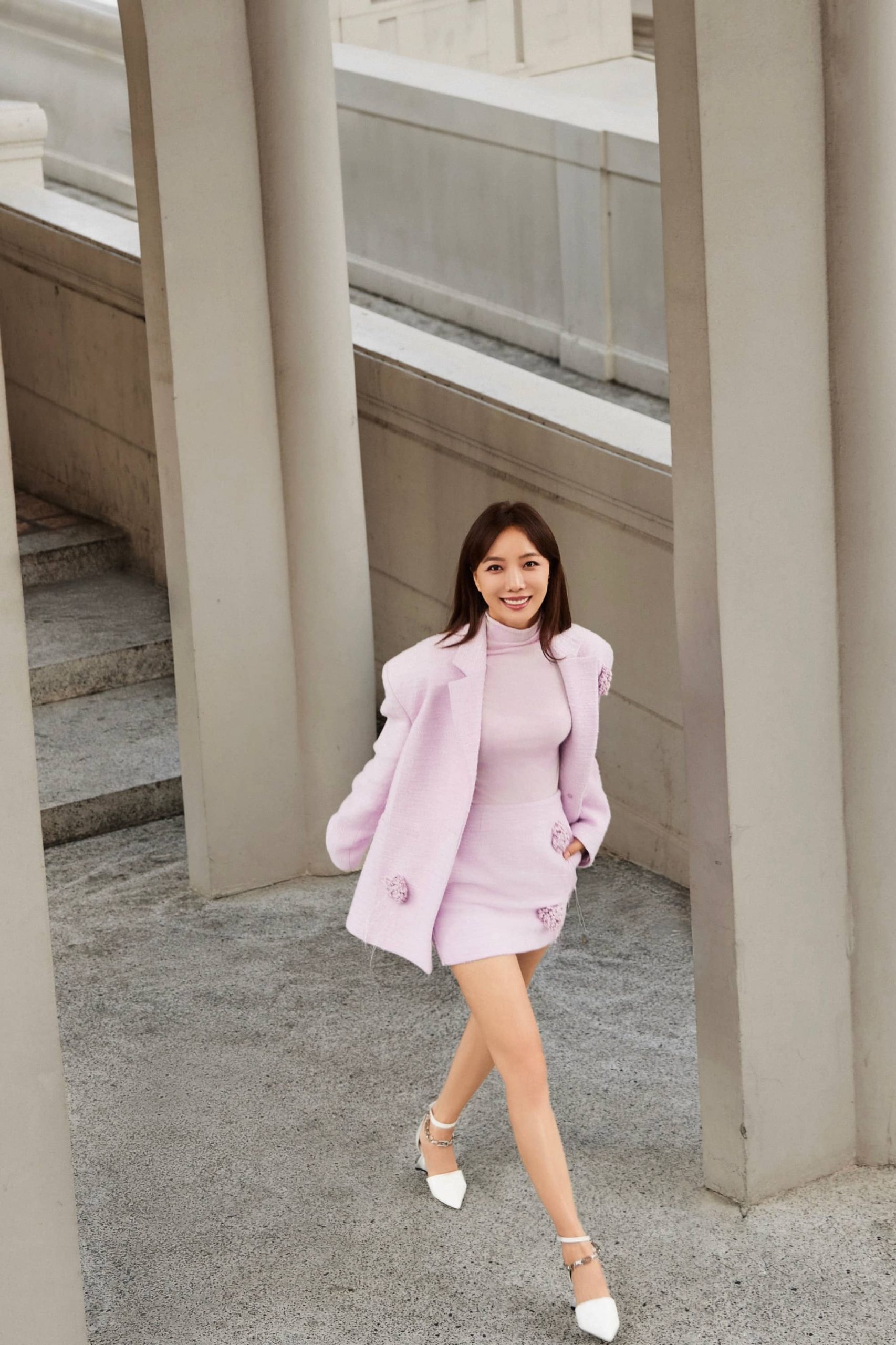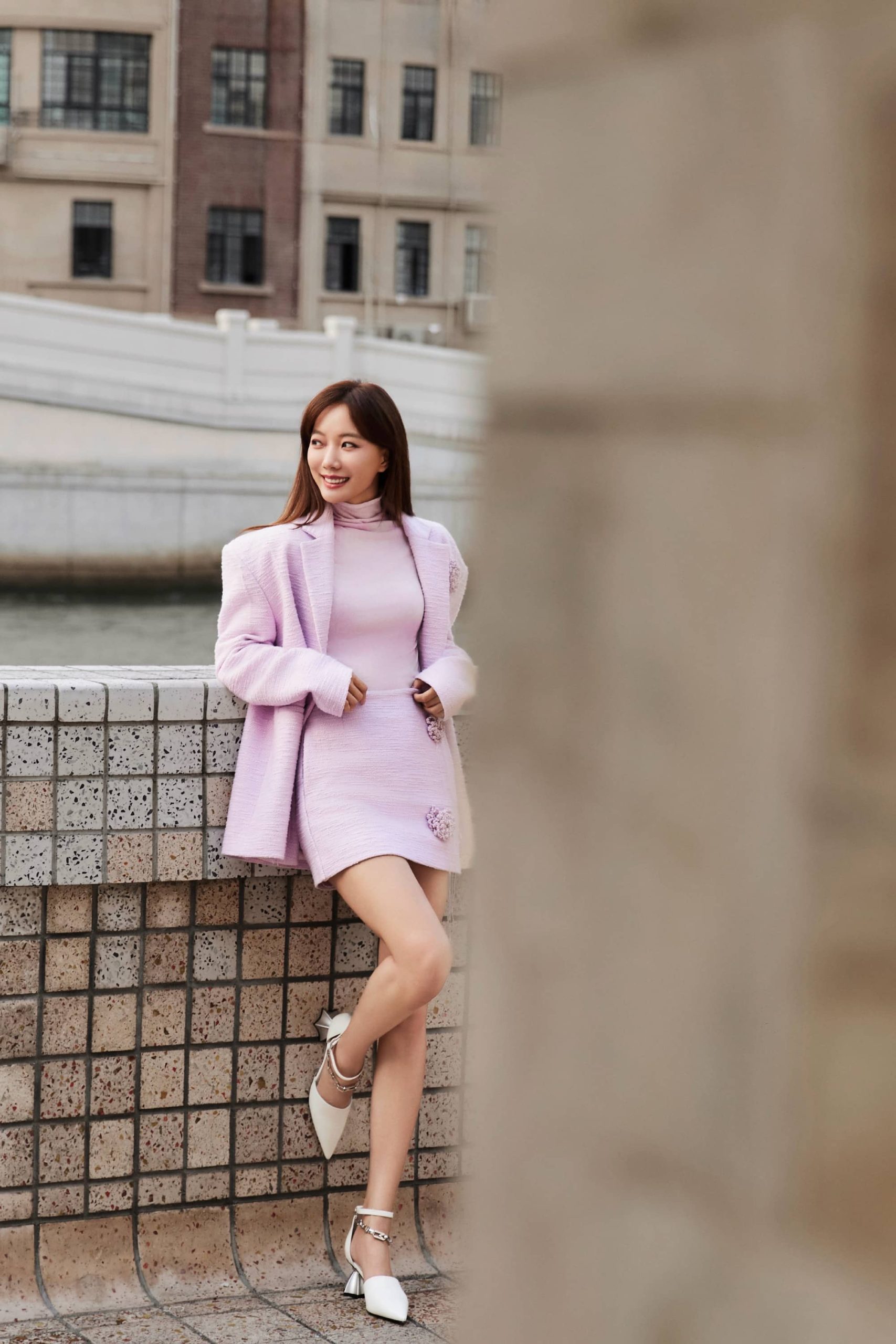 王珞丹,一身粉色套装,格外精致优雅