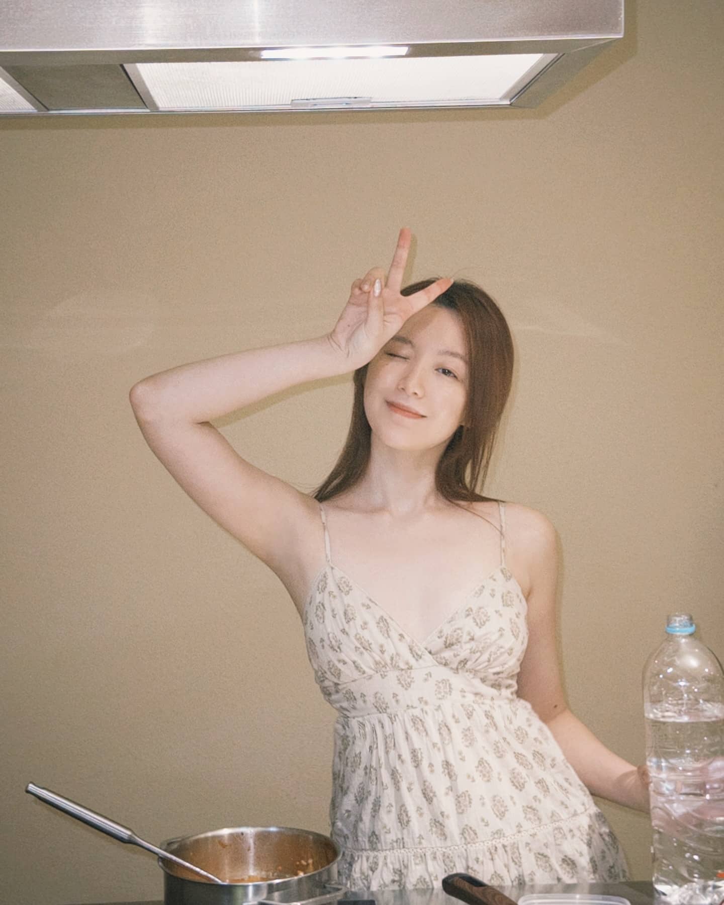 叶舒华INS更新一组私服:淡妆吊带碎花裙好温柔