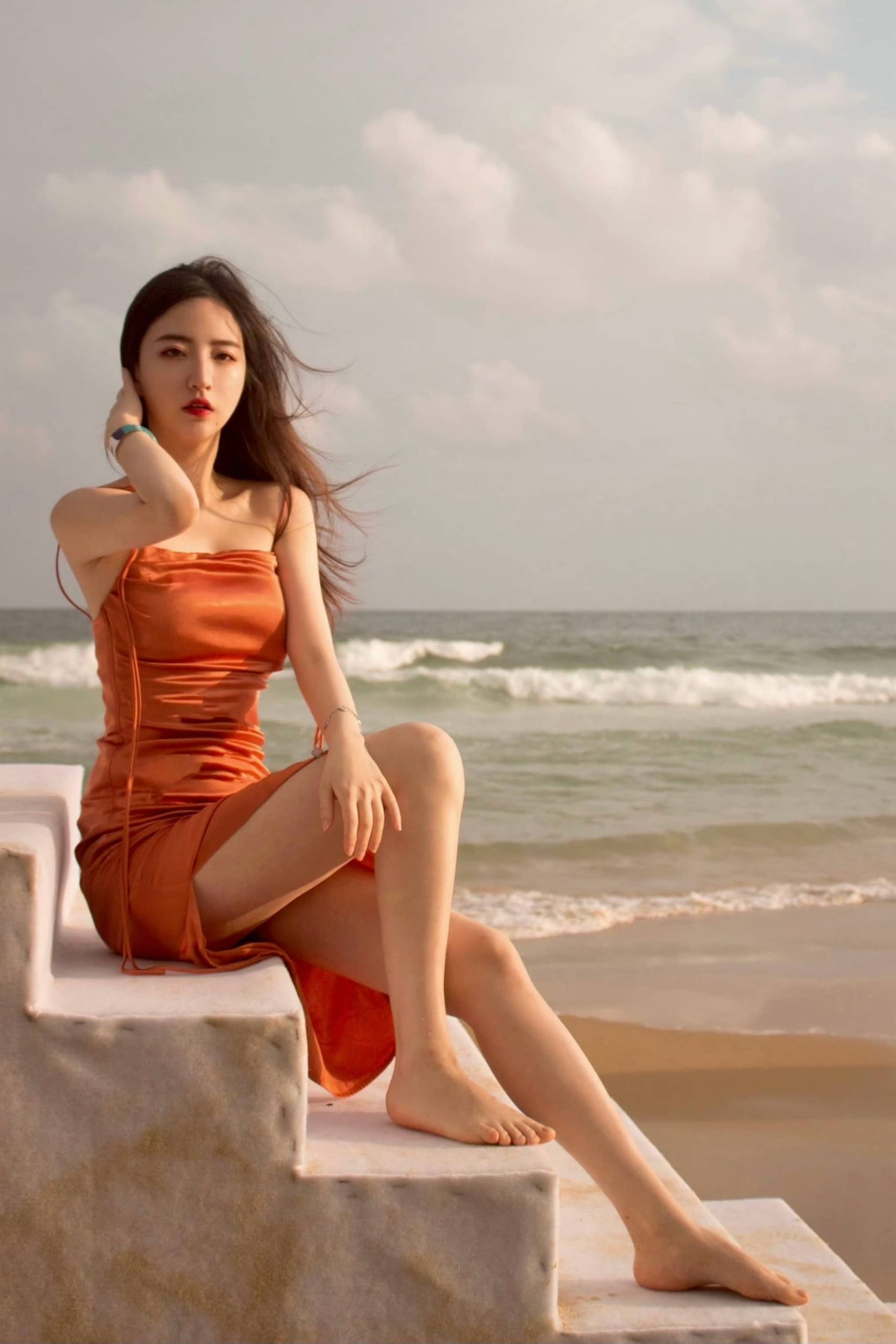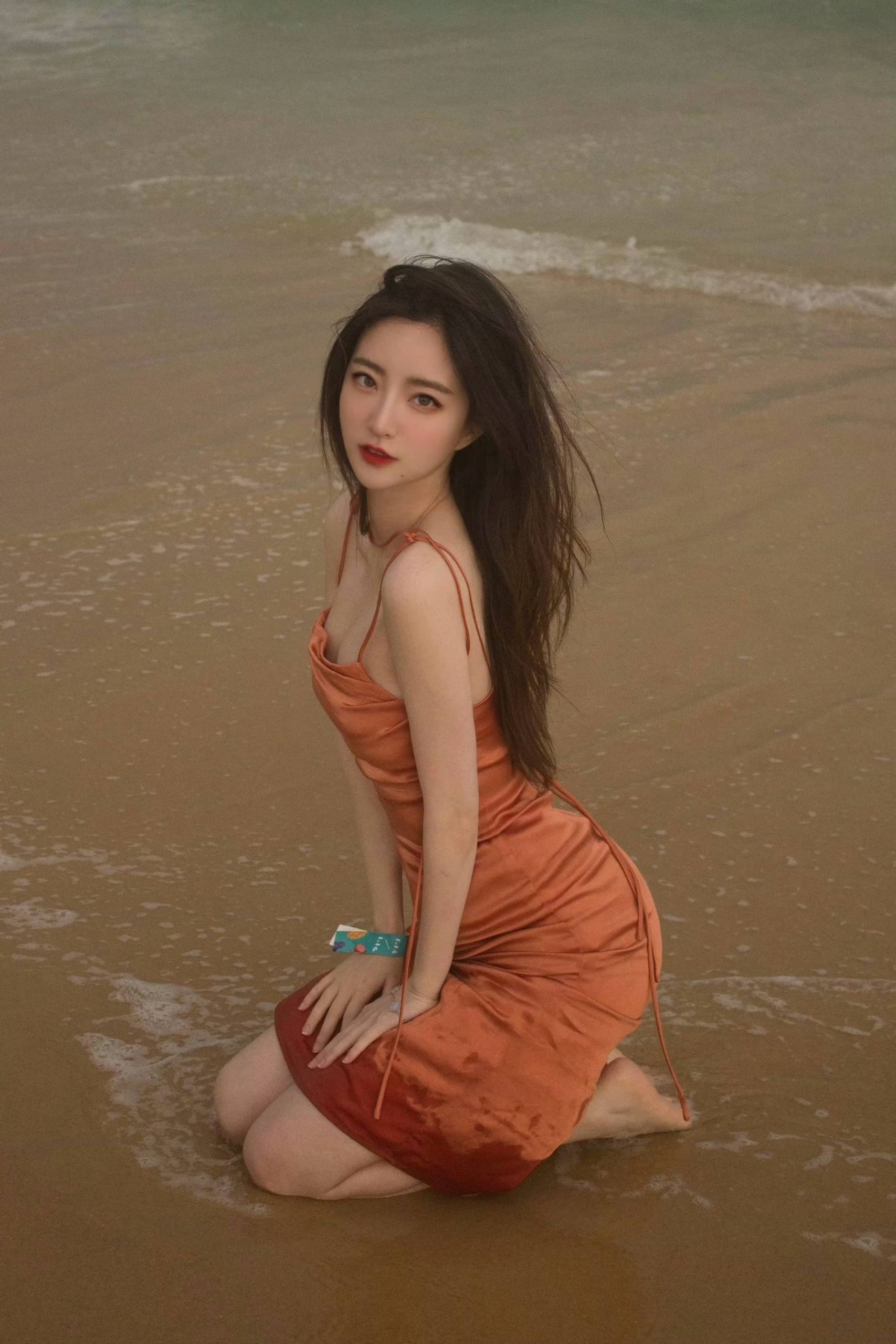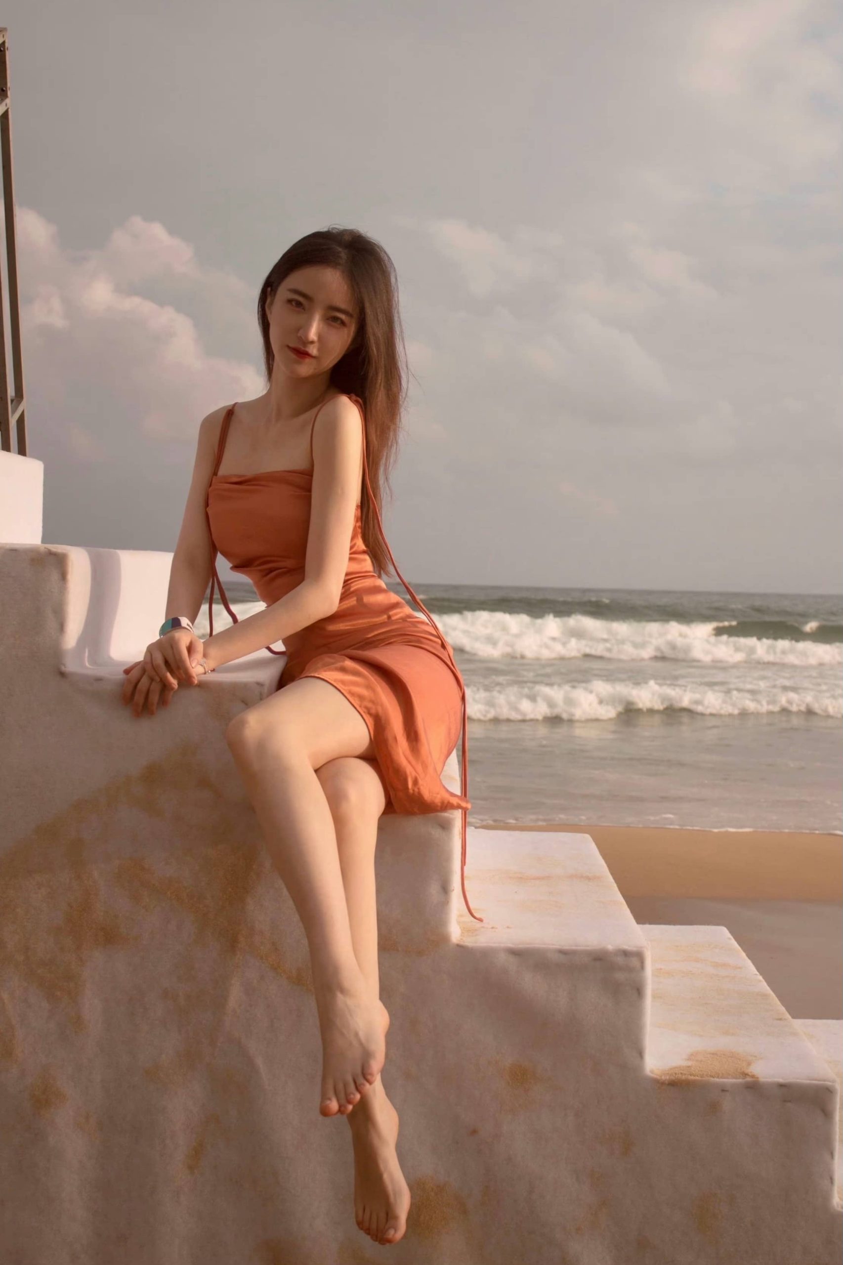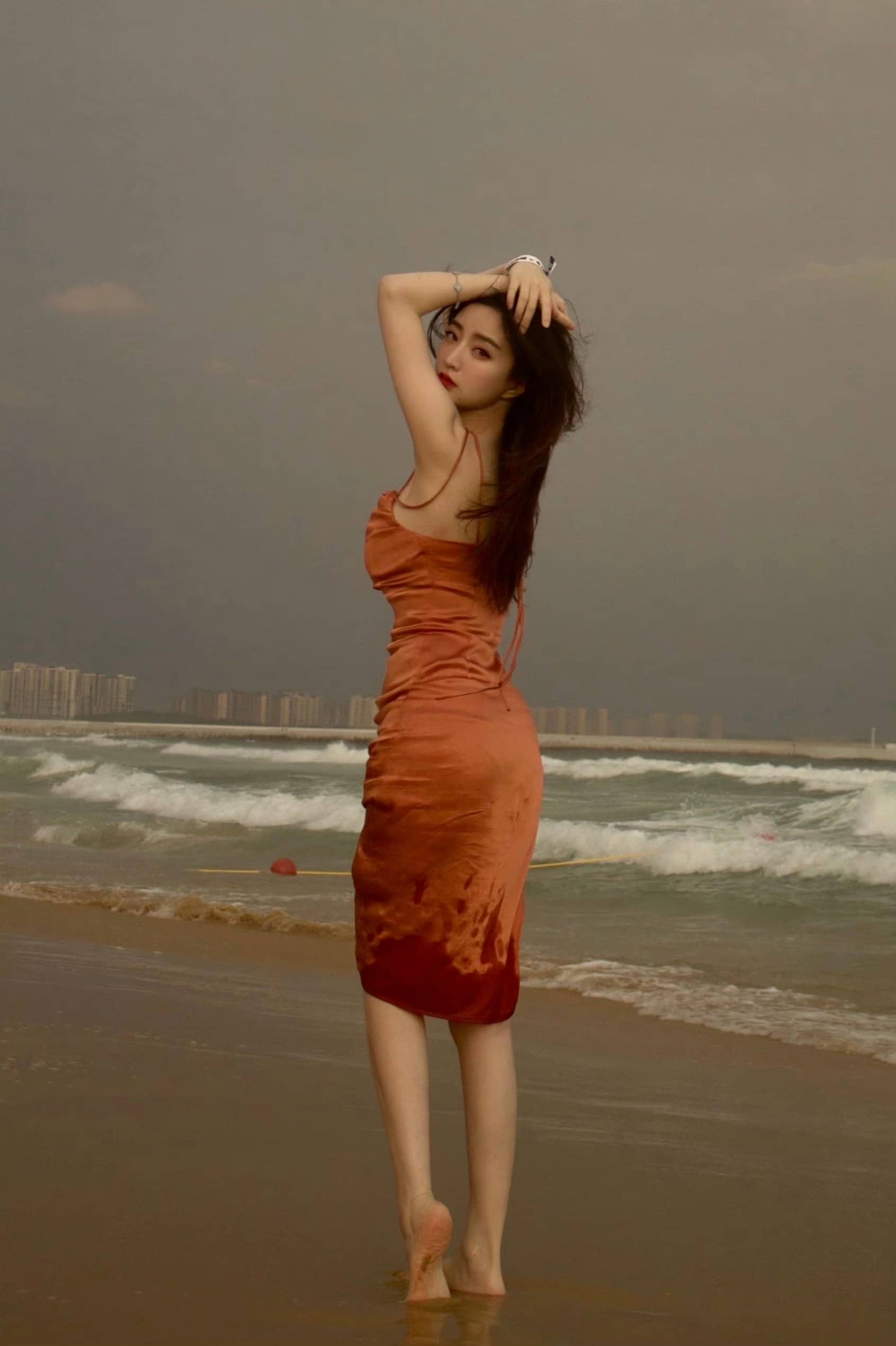 郭珺海边沙滩照