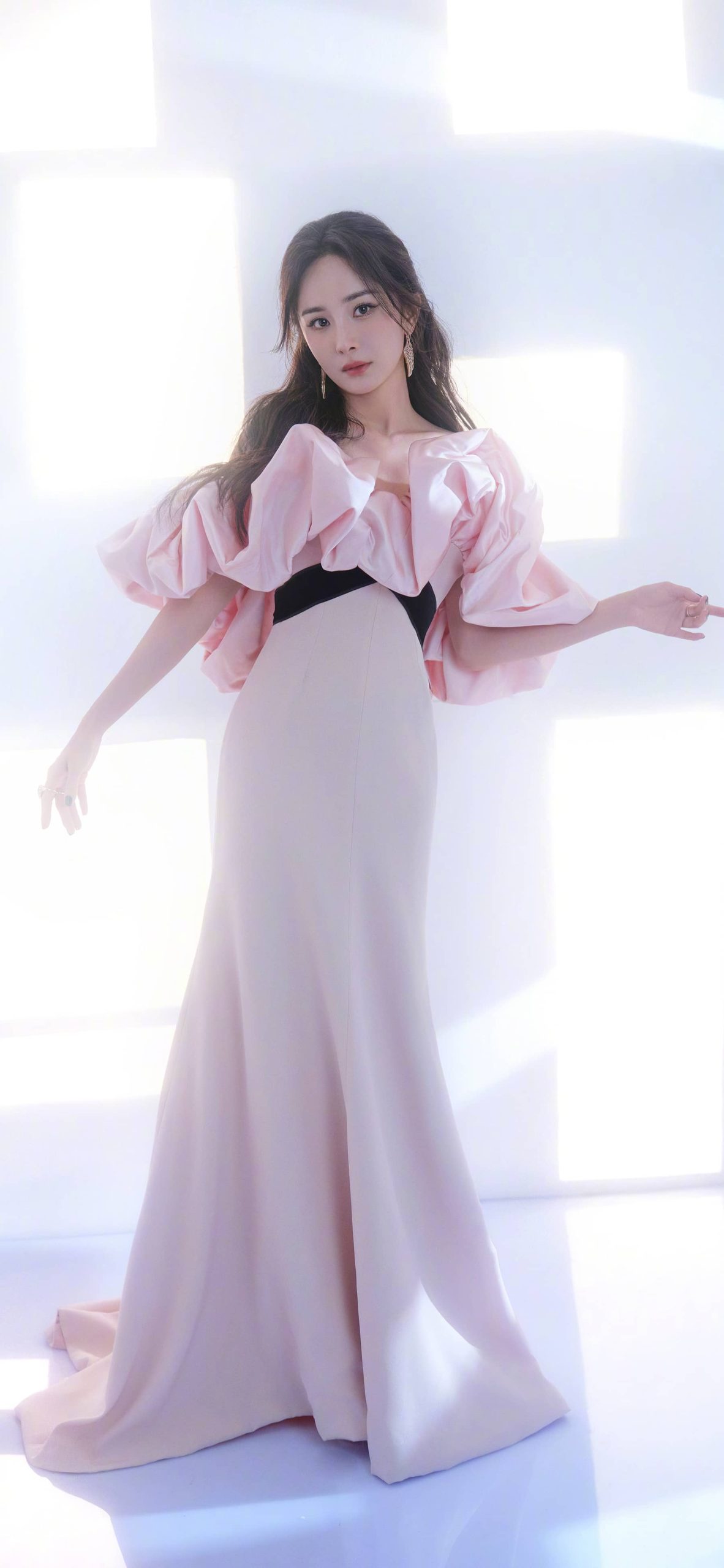 杨幂姐姐,柔美粉裙妆造,手机屏保来了