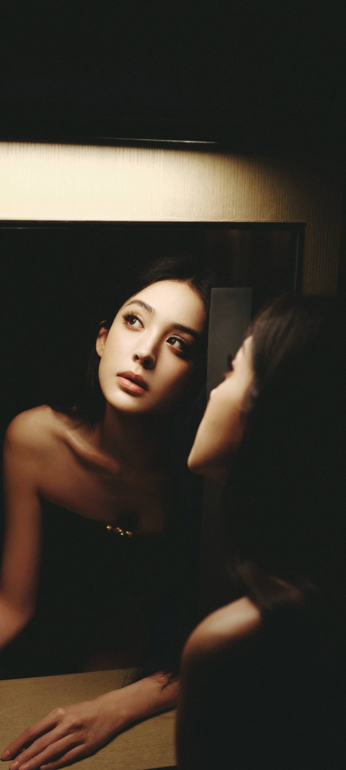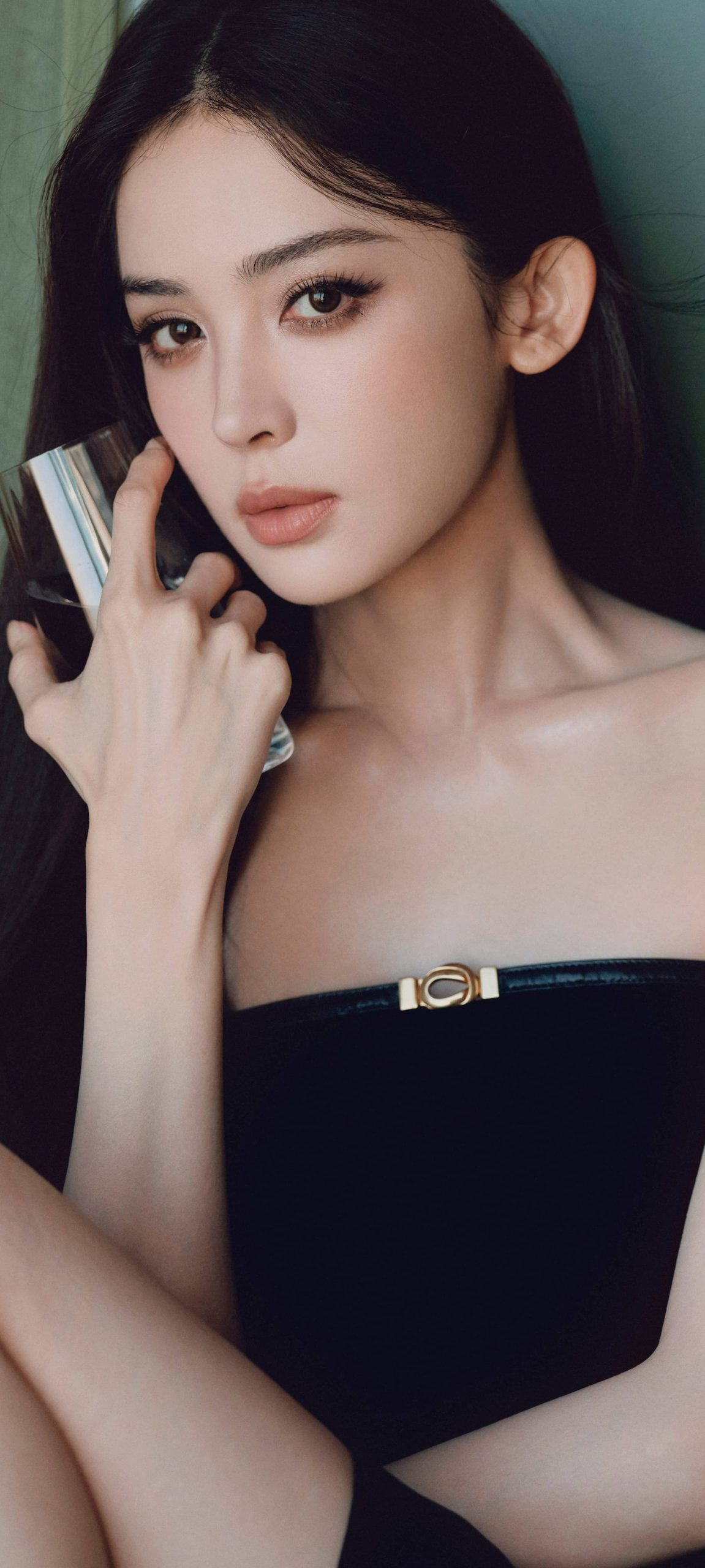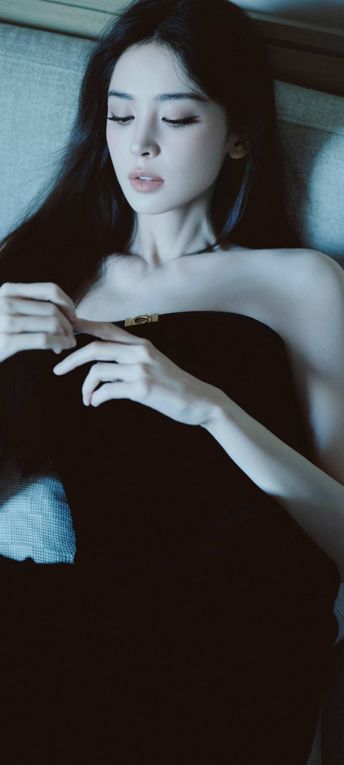 古力娜扎今日壁纸:干练长发抹胸黑裙造型