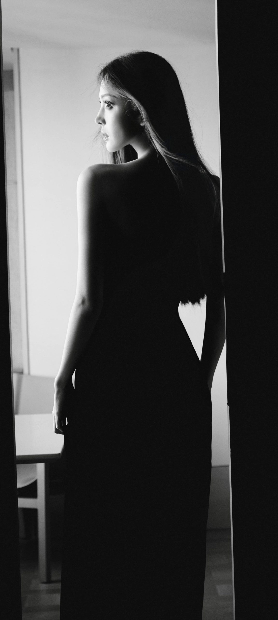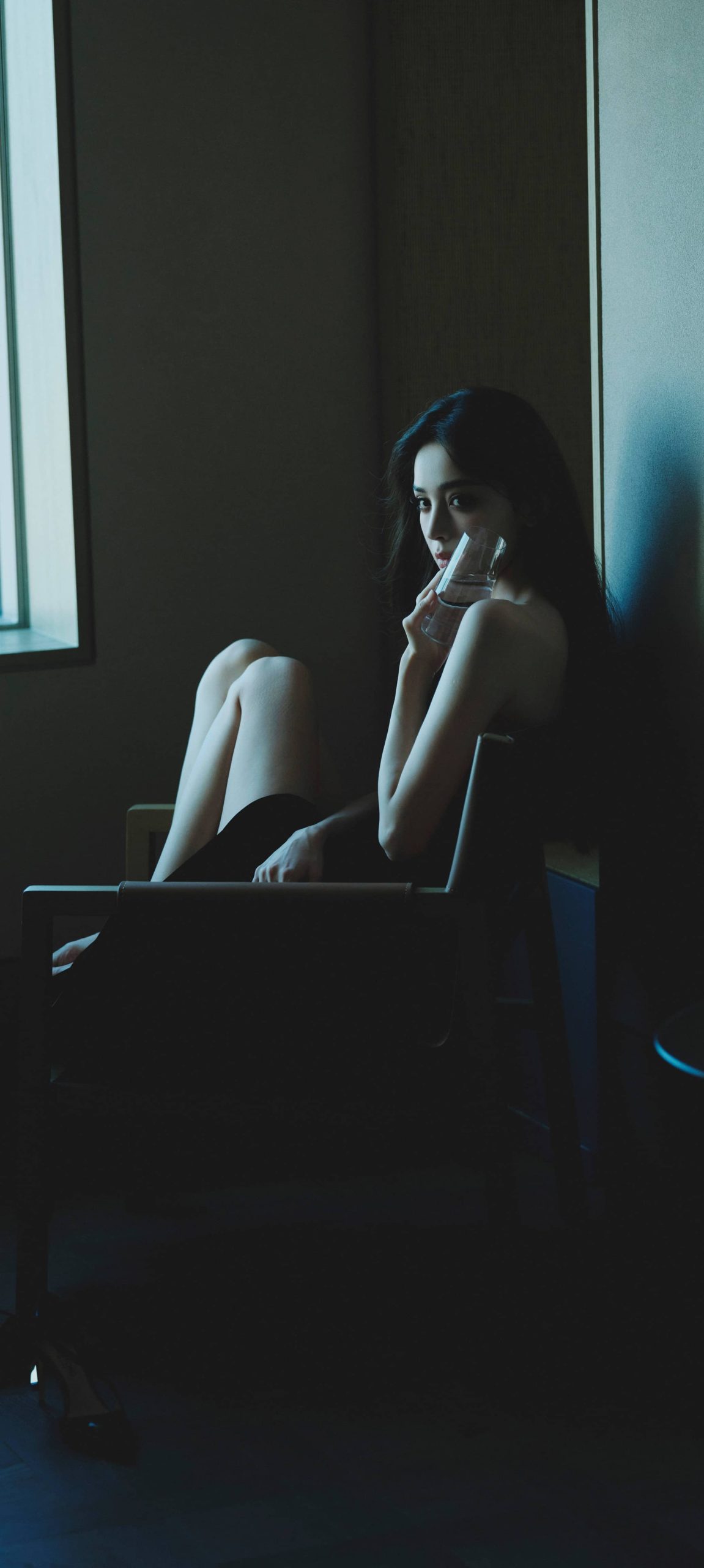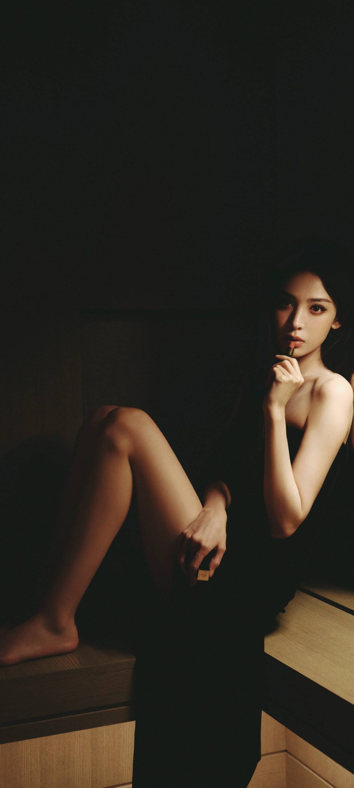 古力娜扎今日壁纸:干练长发抹胸黑裙造型