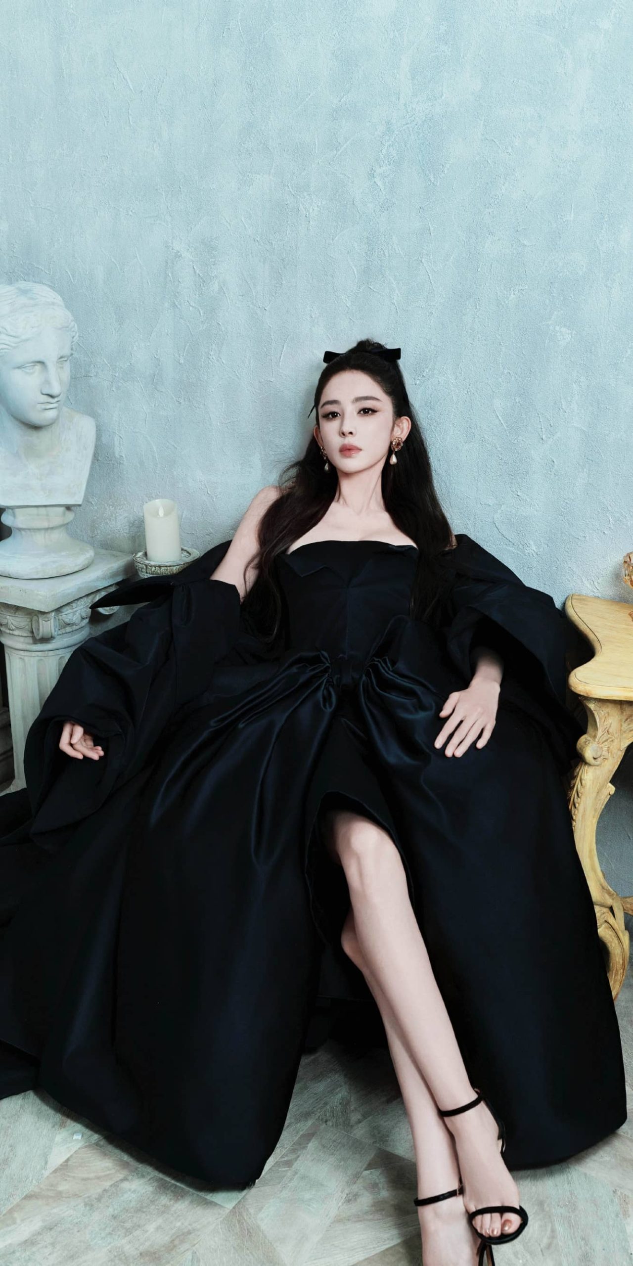 古力娜扎壁纸:浓颜黑裙美腿妆造精选