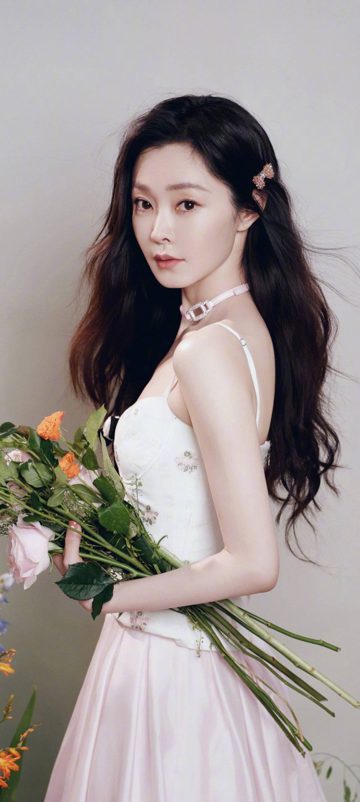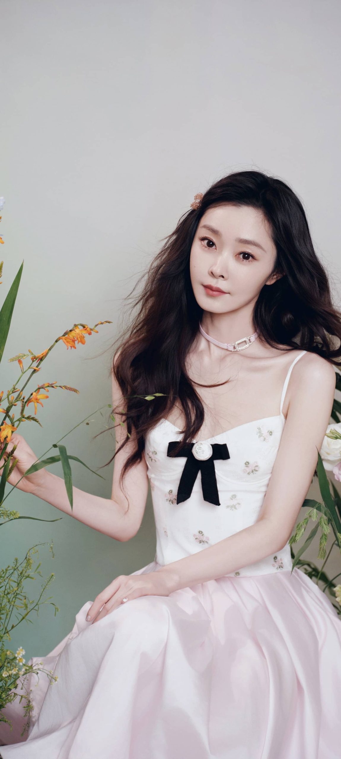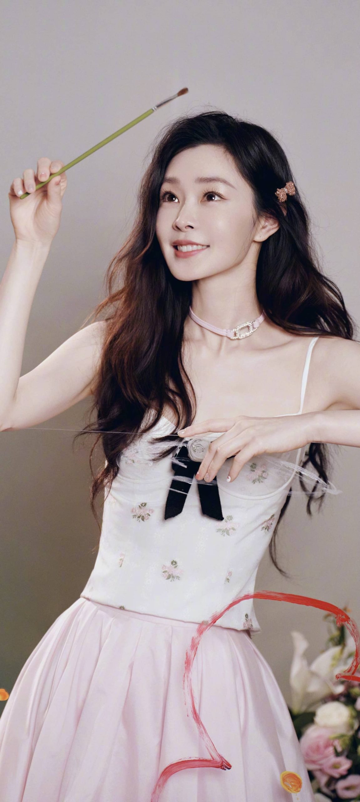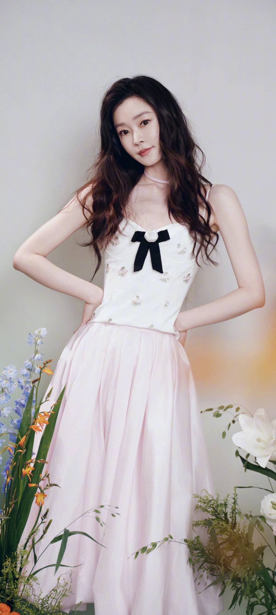 宋轶穿搭壁纸,长发吊带裙,今日份甜度满格