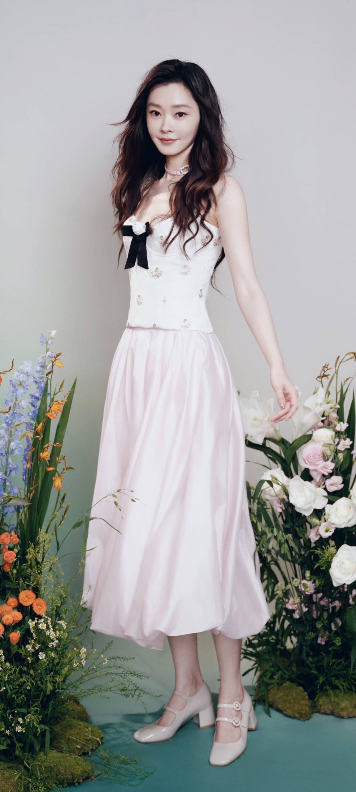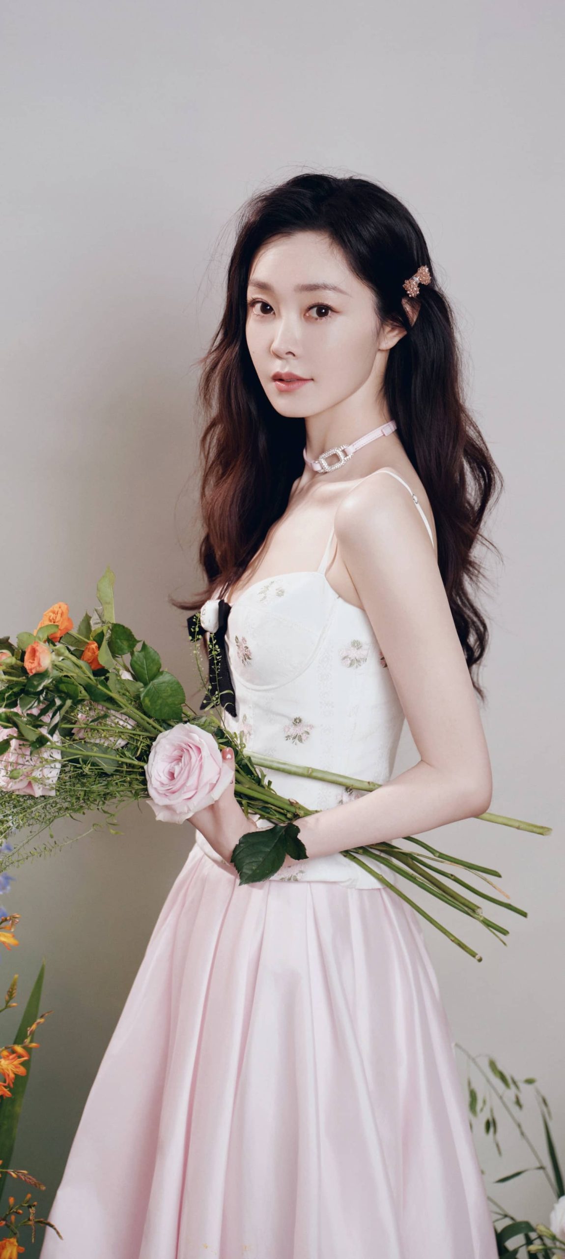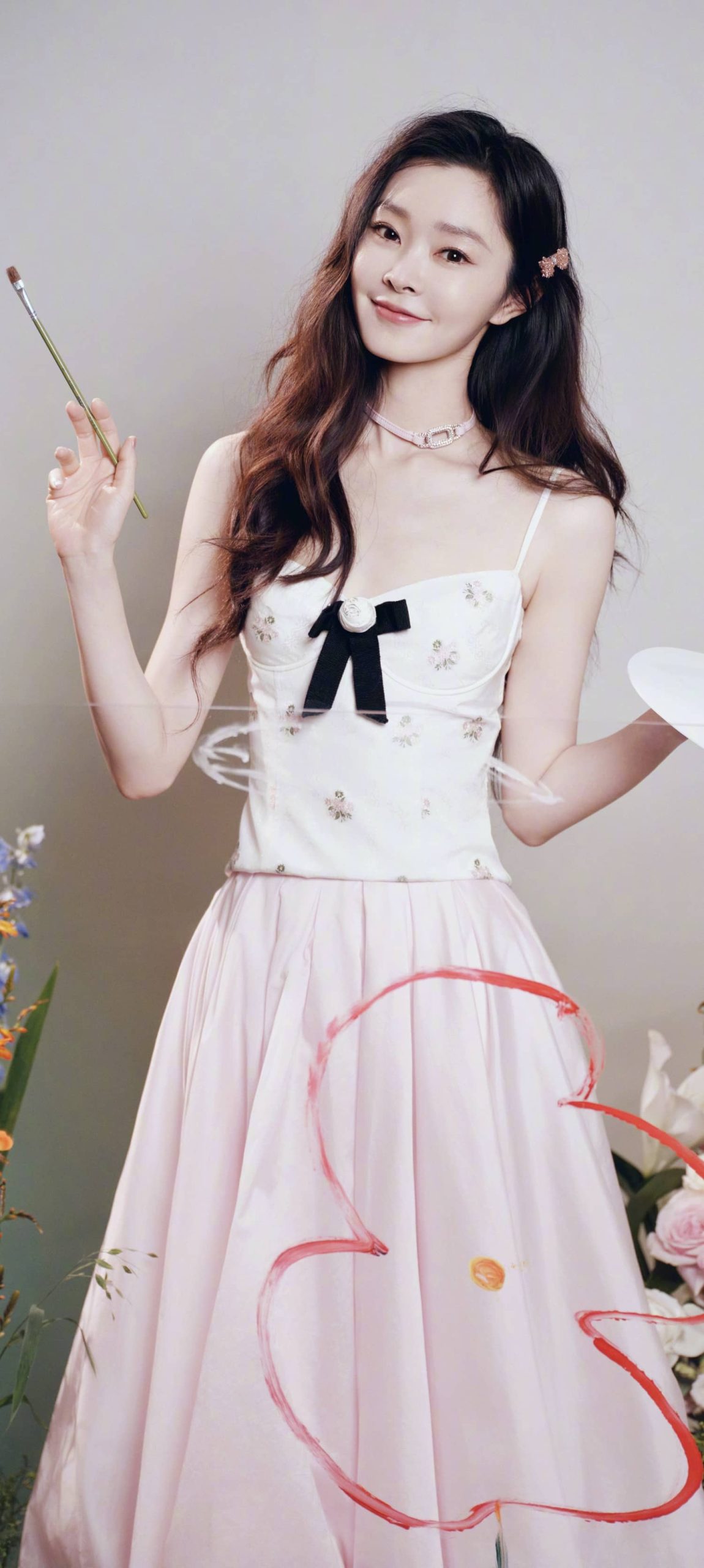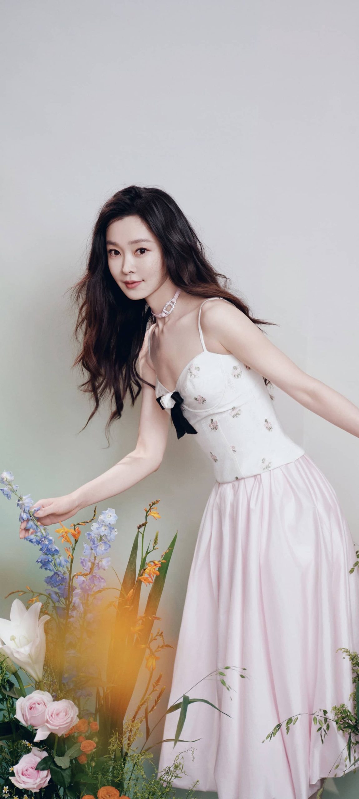 宋轶穿搭壁纸,长发吊带裙,今日份甜度满格