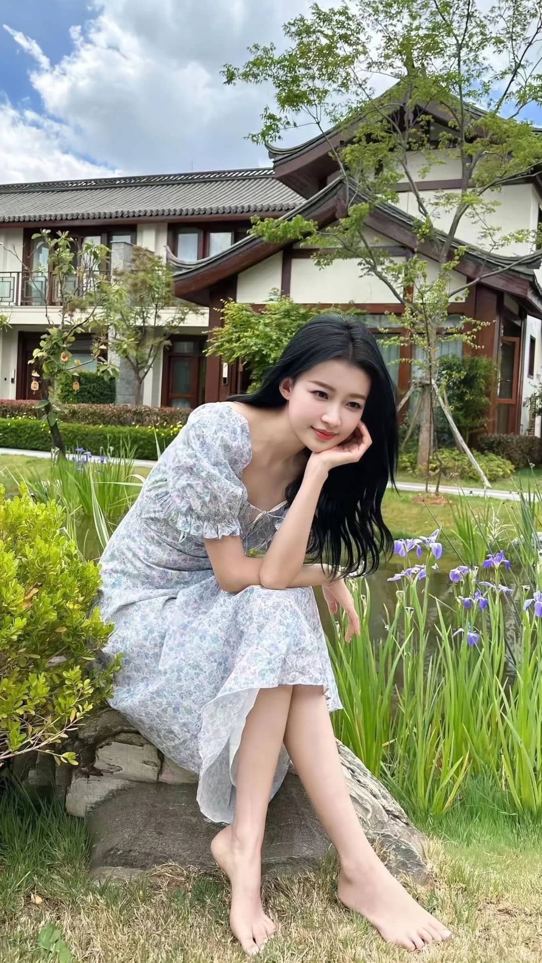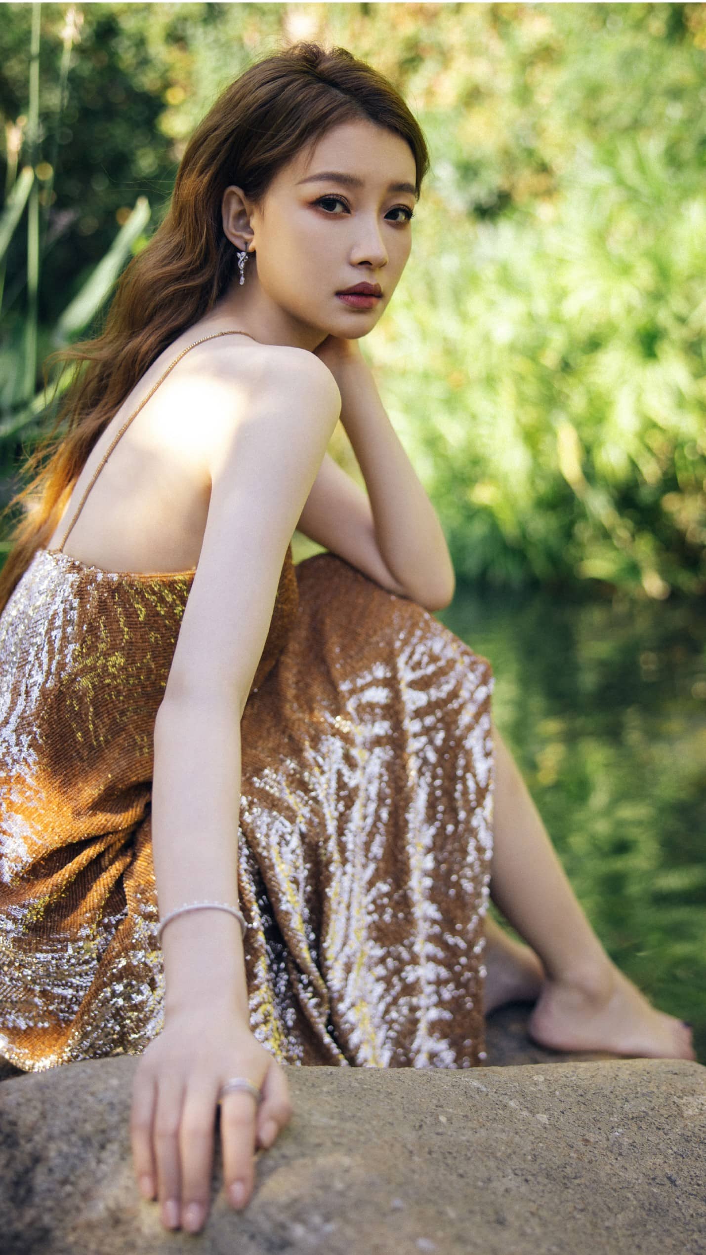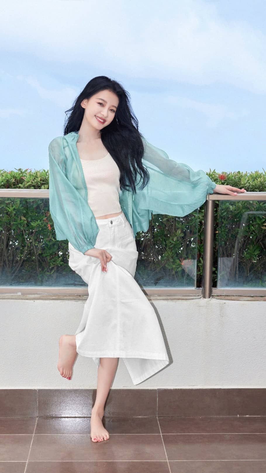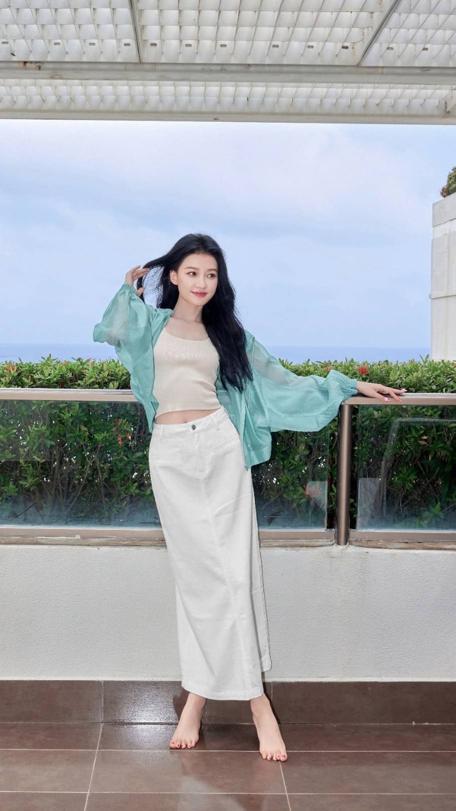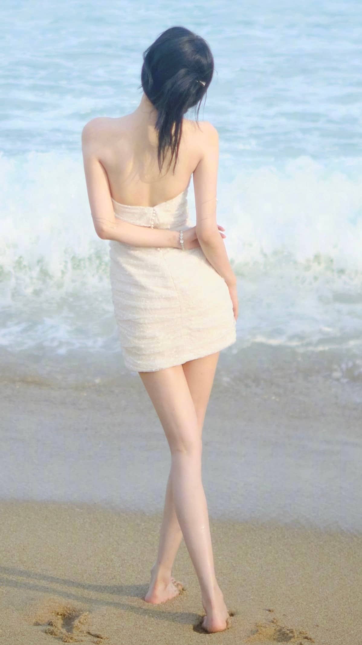 孙怡柔美穿搭姿态:光脚美腿,温柔甜美(18图片)